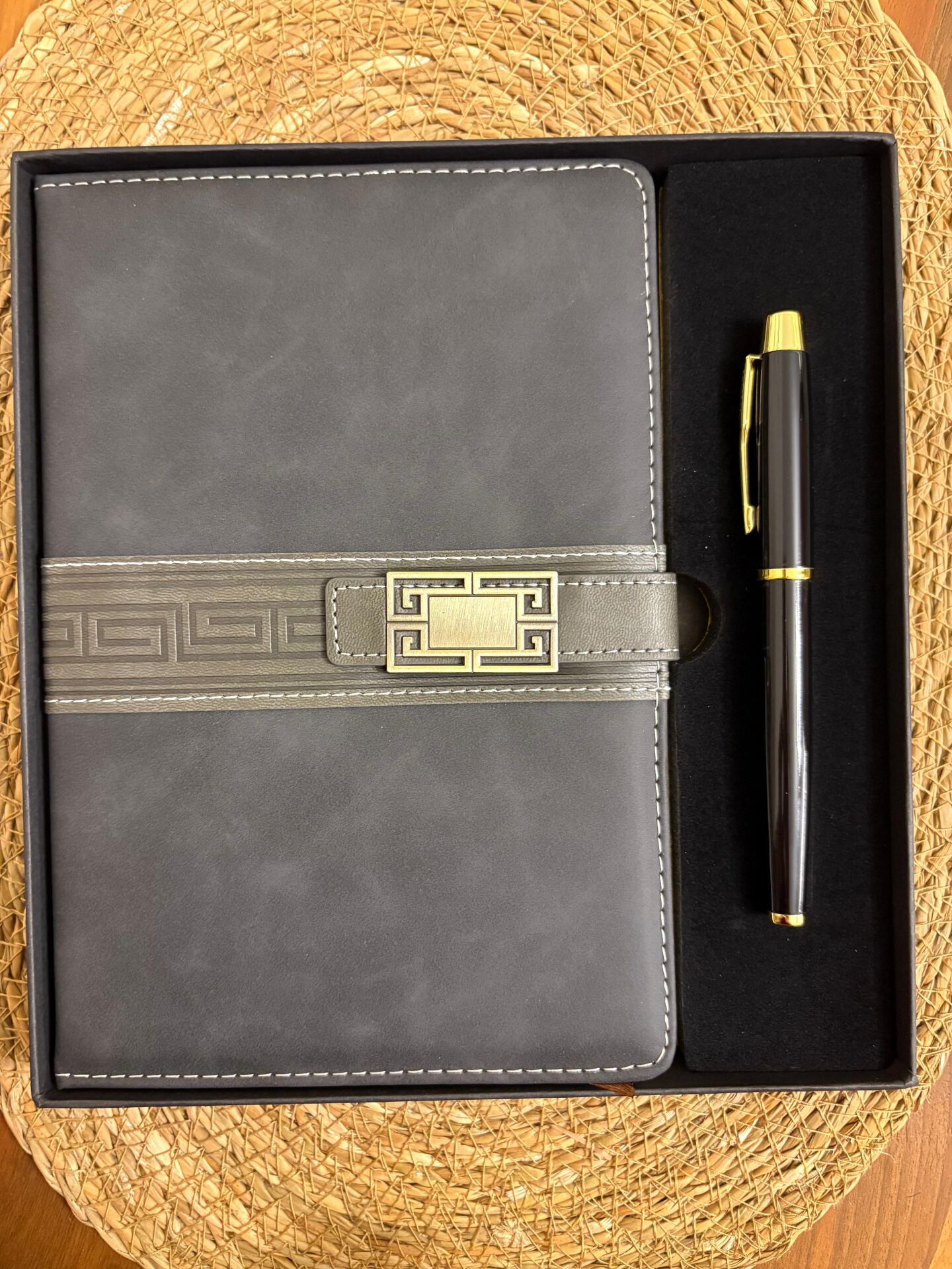 Lüks deri kapaklı defter ve metal kalemden oluşan bu özel set; şık tasarımı, kaliteli malzemesi ve profesyonel görünümüyle hem kurumsal hem kişisel hediye olarak ideal bir seçenektir. A5 boyutundaki defter çizgili yapısıyla toplantı, iş planlama ve günlük notlar için uygundur. Metal kalem pürüzsüz yazımıyla uzun süreli kullanım sağlar. Özel kutusunda gönderilir ve hediye vermeye hazırdır.